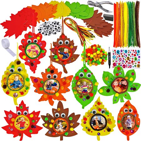 20 Sets Fall Leaf Ornaments Decorations Diy Fall Leaf Picture Foam Frame Craft Kit Assorted Autumn Leaf Shapes Stickers Pipe Cleaner Pom Poms Googly Eyes For Kids Art Gift Thanksgiving Halloween Decor